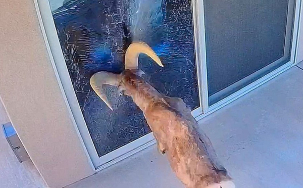 Ένα κριάρι στην Γιούμα, στην Αριζόνα της Αμερικής, φαίνεται ιδιαίτερα νευριασμένο με την αντανάκλασή του σε τζαμαρία σπιτιού και επιλέγει να επιτεθεί.
