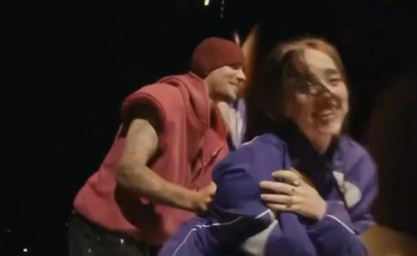 Εκεί, έδωσε το παρών και η Μπίλι Άιλις, η οποία από απλή θαυμάστρια, βρέθηκε να ανεβαίνει στη σκηνή, στο πλευρό του.