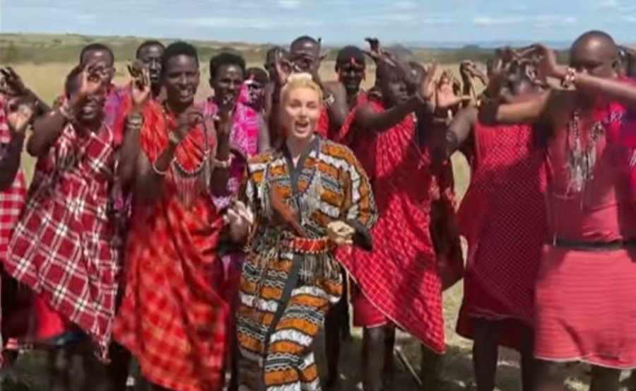 Στο βίντεο που δημοσίευσε, απεικονίζεται η ίδια να χορεύει και να τραγουδά ανάμεσα σε άτομα που ζουν στην Αφρική, οι οποίοι έχουν μπει στο χορό και ακολουθούν τα βήματά της.