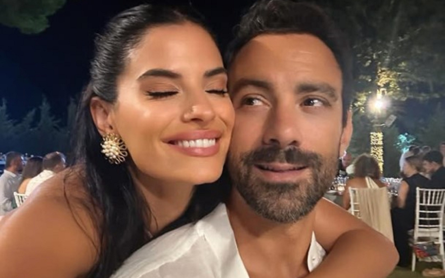 Στην φωτογραφία απεικονίζεται το ζευγάρι να απολαμβάνει τη στιγμή, με την Χριστίνα Μπόμπα να στέκεται χαμογελαστό στο πλευρό του Σάκη Τανιμανίδη.