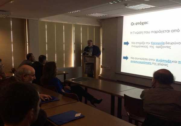 Απευθυνόμενος τέλος στους εκπροσώπους του ερευνητικού, διοικητικού και τεχνικού προσωπικού όλων των Ερευνητικών Κέντρων, ο Αν. Υπουργός τόνισε τη σημαντική συμβολή όλων όσων εργάζονται σε αυτά, στο αξιοσημείωτο ερευνητικό έργο που παράγεται στη χώρα.