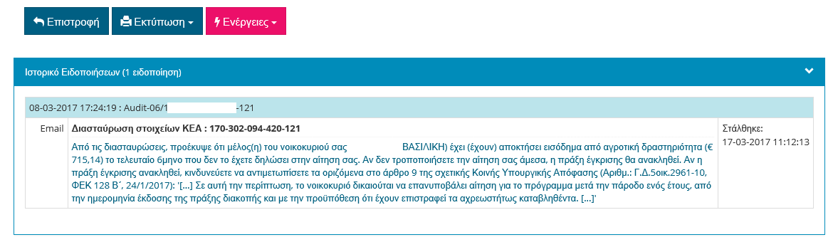 Στην ακόλουθη εικόνα εμφανίζεται μια ειδοποίηση που έχει σταλεί με e-mail: