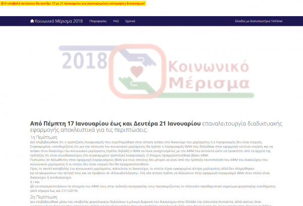 Κοινωνικό μέρισμα: Από Πέμπτη 17 Ιανουαρίου έως και Δευτέρα 21 Ιανουαρίου επαναλειτουργία διαδικτυακής εφαρμογής (koinonikomerisma.gr) αποκλειστικά για τις περιπτώσεις: