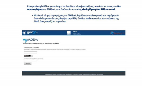 H υπηρεσία myAADElive για απόκτηση κλειδαρίθμου μέσω βιντεοκλήσης, απευθύνεται σε όσους δεν πιστοποιήθηκαν στο ΤΑΧΙSnet με τη διαδικασία αποστολής κλειδαρίθμου μέσω SMS και e-mail.