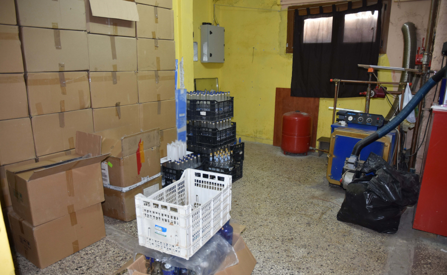 Στα σημεία ελέγχου κατασχέθηκαν μηχανήματα εμφιάλωσης, πλήρωσης φιαλών, αντλίες με αντίστοιχα φίλτρα καθαρισμού ύδατος, 1.380 πλαστές αυτοκόλλητες ετικέτες και 706 πλαστά πώματα επώνυμων αλκοολούχων ποτών, 40 χαρτοκιβώτια συσκευασίας και 2.249 κενές φιάλες επώνυμων αλκοολούχων ποτών (έτοιμες προς πλήρωση), εργαλεία κόλλησης ετικετών, καθώς και συνολικά 430lt αλκοολούχων ποτών που εμπεριέχονταν σε 382 τεμάχια φιαλών αλκοολούχων ποτών επώνυμων εταιριών ευρείας κατανάλωσης, PET και δεξαμενές, έτοιμα προς διάθεση. Το σύνολο των κατασχεθεισών ποσοτήτων αλκοολούχων ποτών στερούντο φορολογικών και τελωνειακών παραστατικών. Επιπλέον, βρέθηκαν και κατασχέθηκαν χρηματικό ποσό ύψους 4.400€, καθώς και αντικείμενα που εμπίπτουν στη νομοθεσία περί παράνομης οπλοκατοχή.
