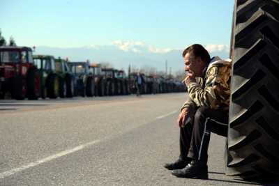 Οι αγρότες έχουν σταθμεύσει στην άκρη της εθνικής οδού και παραμένουν στο σημείο με όλες τους τις δυνάμεις.