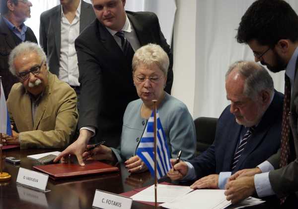 Τη συμφωνία υπέγραψαν, παρουσία του υπουργού Παιδείας, Έρευνας και Θρησκευμάτων Κώστα Γαβρόγλου, από ελληνικής πλευράς ο Αναπληρωτής Υπουργός Έρευνας και Καινοτομίας Κώστας Φωτάκης και από ρωσικής πλευράς η Υπουργός Παιδείας και Επιστήμης της Ρωσικής Ομοσπονδίας Olga Vasilyeva.