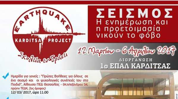 Με σύνθημα ‘Σεισμός: η ενημέρωση και η προετοιμασία νικούν τον φόβο’ το πρόγραμμα «Karditsa Earthquake Project – Σχολεία εν Δράσει», στο οποίο συμμετέχουν όλα τα σχολεία της δευτεροβάθμιας εκπαίδευσης της Καρδίτσας, στοχεύει στην ενημέρωση και στην εκπαίδευση σχετικά με το σεισμό και στα μέτρα πρόληψης και προστασίας.