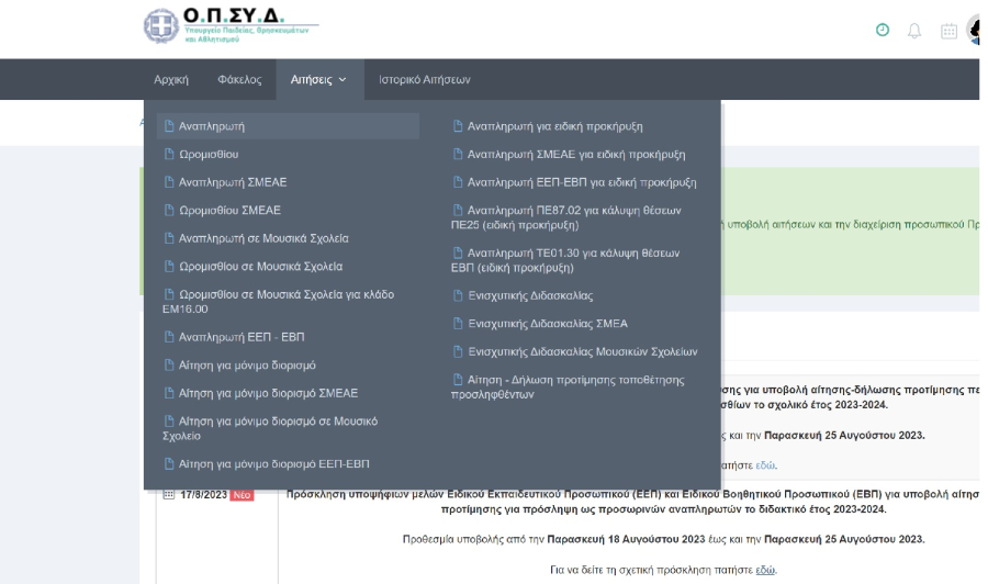 Άνοιξε το ΟΠΣΥΔ για τις δηλώσεις περιοχών απο τους αναπληρωτές. Δείτε τις προσκλήσεις και πως θα κάνετε δήλωση.