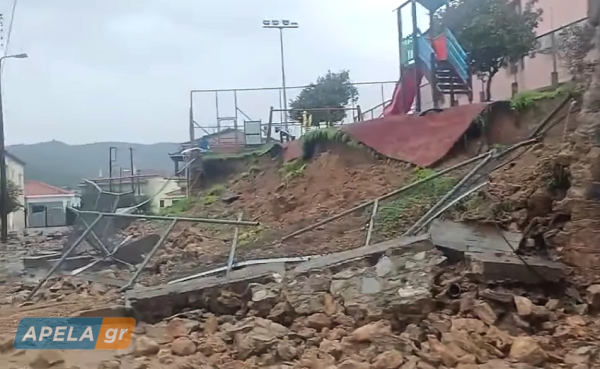 Ο τοίχος, που βρίσκεται στο πλάι της παιδικής χαράς σύμφωνα με το apela.gr υποχώρησε λόγω διάβρωσης του εδάφους, παρασύροντας μαζί του μεγάλο όγκο πέτρων, χώματος και τμήματα της μεταλλικής περίφραξης. Τα υλικά κύλισαν στον παρακείμενο δρόμο, αποκλείοντας πλήρως τη διέλευση οχημάτων και καθιστώντας αδύνατη την κυκλοφορία.