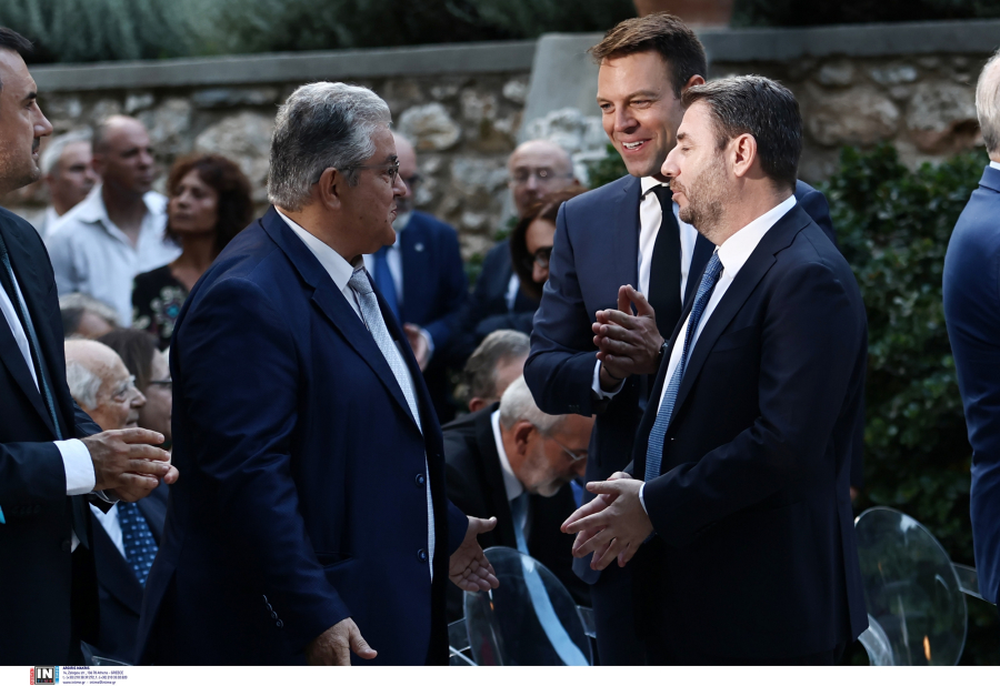 Το τετ α τετ του Δημήτρη Κουτσούμπα με τον Στέφανο Κασσελάκη και τον Νίκο Ανδρουλάκη, αλλά και η χαλαρή κουβέντα Μητσοτάκη - Κωνσταντοπούλου είναι μόνο κάποια από τα καρέ που ξεχώρισαν στο Προεδρικό Μέγαρο.