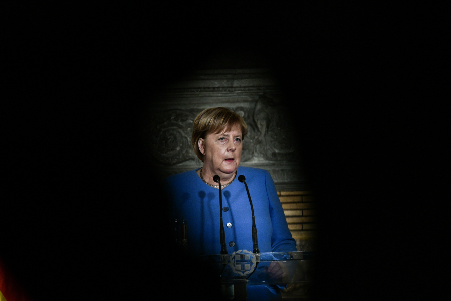 Ανάμεσα στον Αλέξη Παπαχελά και τον Αλέξη Τσίπρα κάθησε η Άνγκελα Μέρκελ στο δείπνο που παρέθησε προς τιμήν της η «Καθημερινή» στο Μουσείο Λαλαούνη.