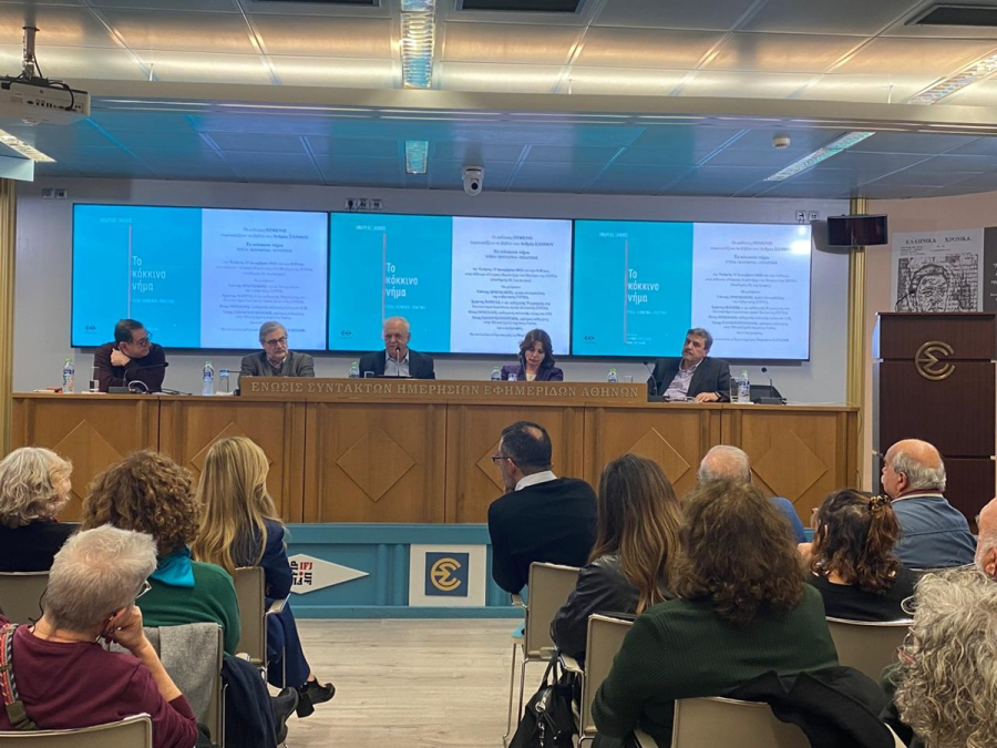 Το βιβλίο του Ανδρέα Ξανθού «Το κόκκινο νήμα», παρουσιάστηκε χθες σε μια κατάμεστη αίθουσα της ΕΣΗΕΑ.