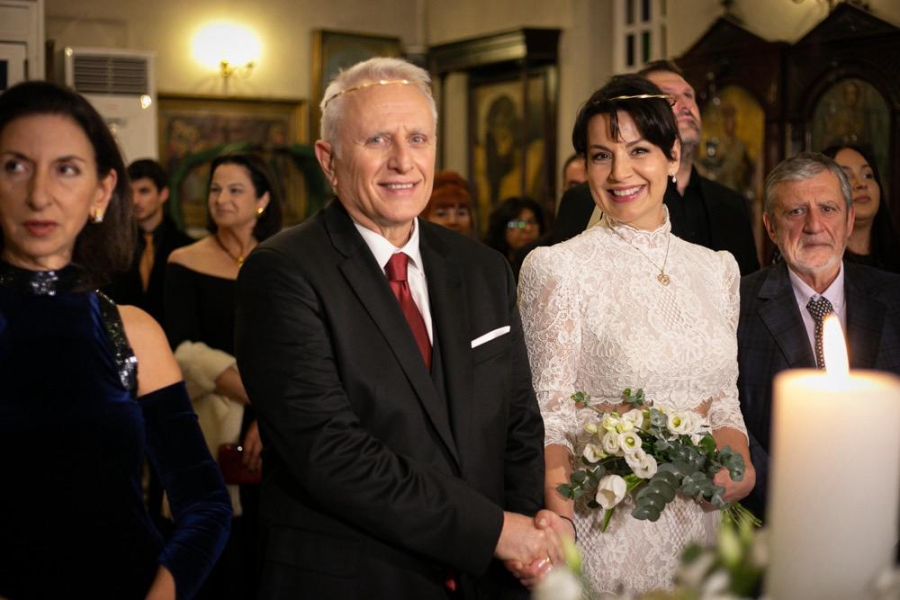 Η στήλη σας παραθέτει αποκλειστικές φωτογραφίες και μέσα από την εκκλησία, αλλά και από το τραπέζι με τους συγγενείς πρώτου βαθμού και τους κουμπάρους σε ταράτσα του κέντρου της Αθήνας.