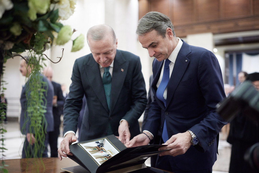 Ένα κομπολόι έκανε δώρο ο Ρετζέπ Ταγίπ Ερντογάν στον Κυριάκο Μητσοτάκη στο δείπνο που παρέθεσε προς τιμήν του ο Τούρκος Πρόεδρος στο Λευκό Παλάτι.