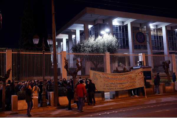Με σύνθημα «κυβέρνηση των ΗΠΑ για τα αφεντικά και για τους λαούς τα σύνορα κλειστά», οι συγκεντρωμένοι διαμαρτυρήθηκαν για την πολιτική του Ντόναλντ Τραμπ.