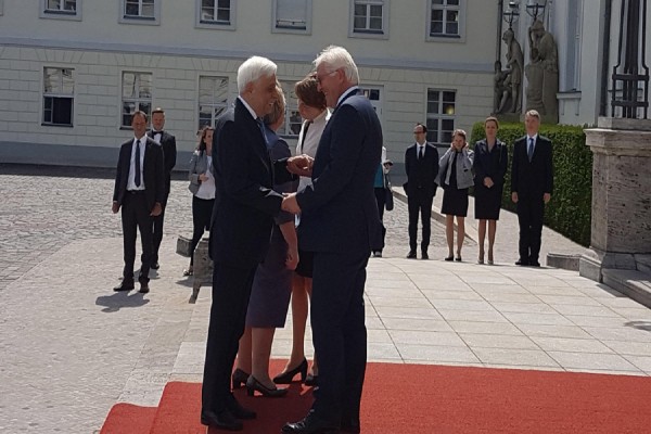 Το ελληνικό προεδρικό ζεύγος υπέγραψαν στο βιβλίο του επισκεπτών υπέρ της συνεργασίας των δύο λαών, και ευχαρίστησαν τον κ. Σταϊνμάγερ για την επίσημη πρόσκληση.