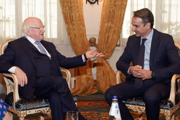 Συνάντηση με τον Ιρλανδό Πρόεδρο Μάικλ Χίγκινς είχε ο πρόεδρος της ΝΔ Κυριάκος Μητσοτάκης. Σύμφωνα με ενημέρωση από το κόμμα της αξιωματικής αντιπολίτευσης, κατά τη διάρκειά της εκφράστηκε η αμοιβαία βούληση για περαιτέρω εμβάθυνση των διμερών σχέσεων Ελλάδας- Ιρλανδίας.