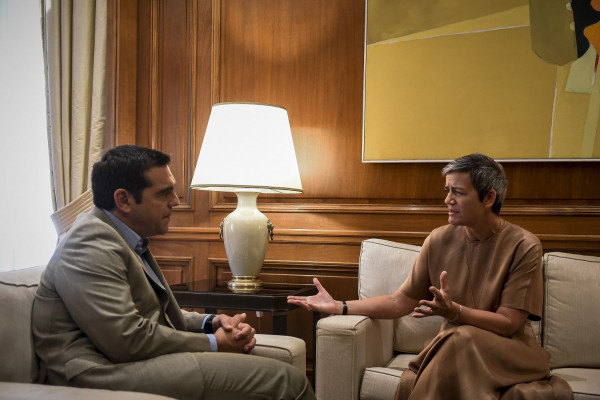 Σε εξέλιξη βρίσκεται η συνάντηση του πρωθυπουργού Αλέξη Τσίπρα με την Ευρωπαία επίτροπο, αρμόδια για την πολιτική ανταγωνισμού, Μαργκρέτε Βεστάγκερ.