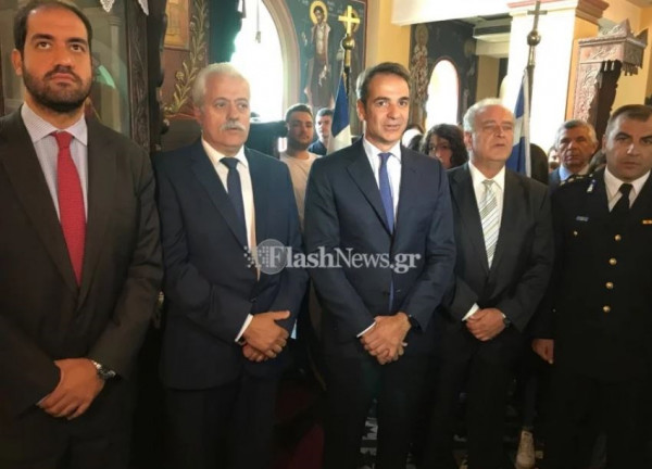 Ο Πρόεδρος της ΝΔ έφτασε στις 10 το πρωί στις Βρύσες για να παραστεί στην τέλεση της δοξολογίας στον Ιερό Ναό της Μεταμορφώσεως του Σωτήρος.