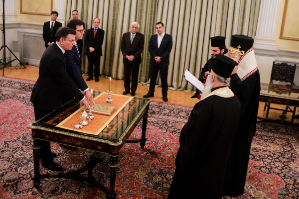 Με θρησκευτικό όρκο ορκίστηκαν ο Θάνος Μωραΐτης και ο Αγγελος Τόλκας, ενώ με πολιτικό οι Γ. Κατρούγκαλος, Σία Αναγνωστοπούλου, Κώστας Μπάρκας και Ελευθερία Χατζηγεωργίου.
