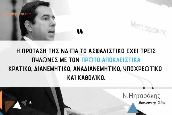 Ο κ. Μπαλαούρας σε άρθρο του στο iliaweb.gr, υποστήριξε ότι ο κ. Μηταράκης είπε σε ημερίδα για το ασφαλιστικό ότι η πρόταση της ΝΔ «θα περιλαμβάνει την κατάργηση της υποχρεωτικής δημόσιας ασφάλισης και θα επιτρέπει σε όσους θέλουν (τους έχοντες) να ασφαλίζονται σε ιδιωτικές ασφαλιστικές εταιρείες».