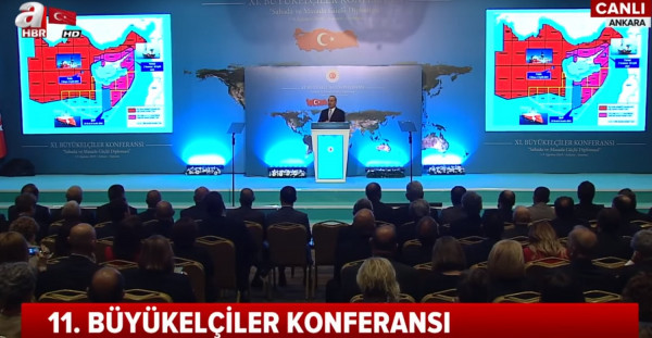 Οι προκλήσεις Τσαβούσογλου ξεπέρασαν κάθε όριο, καθώς κατά την διάρκεια ομιλίας του στην Άγκυρα, παρουσίασε χάρτη με την υφαλοκρηπίδα της Τουρκίας να φτάνει μέχρι την Κρήτη.