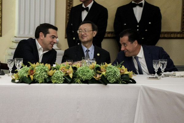 Από τη χαλαρή ατμόσφαιρα κατά το δείπνο είναι και τα φωτογραφικά στιγμιότυπα που ακολουθούν. Η χειραψία του προέδρου του ΣΥΡΙΖΑ Αλέξη Τσίπρα με τον Αδωνι Γεωργιάδη και τον Μάκη Βορίδη, γεγονός που κάποιοι ισχυρίστηκαν ότι προκάλεσε και πειράγματα από τον Κυριάκο Μητσοτάκη προς τον αρχηγό της αξιωματικής αντιπολίτευσης.
