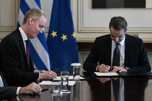 Συγκεκριμένα, οι κ. Μητσοτάκης και ΜακΝτάουελ υπέγραψαν στο Μέγαρο Μαξίμου, παρουσία του υπουργού Ανάπτυξης και Επενδύσεων Άδωνι Γεωργιάδη, του υφυπουργού Γιάννη Τσακίρη και του επικεφαλής του Οικονομικού Γραφείου του πρωθυπουργού, Αλέξη Πατέλη, συμφωνία για τη σύσταση, από το υπουργείο Ανάπτυξης και Επενδύσεων, Ταμείου Εγγυοδοσίας δανείων μικρομεσαίων επιχειρήσεων, μέσω του οποίου θα δοθούν επενδυτικά δάνεια και δάνεια κεφαλαίου κίνησης σε μικρομεσαίες επιχειρήσεις.