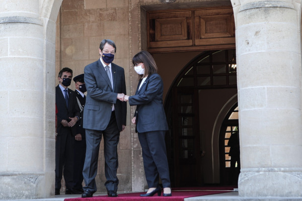 Από την πλευρά της, η κ. Σακελλαροπούλου τόνισε ότι η επίσκεψή της στην Κύπρο είναι ενδεικτική της ιδιαίτερης σχέσης που συνδέει τις δύο χώρες και της σημασίας που αποδίδει η Ελλάδα στο Κυπριακό. «Είναι όντως μια ιδιαίτερα δύσκολη συγκυρία», επεσήμανε και πρόσθεσε: «Η επίσκεψή μου τονίζει ότι οι δύο χώρες έχουν ενιαίο αρραγές διπλωματικό μέτωπο με γνώμονα πάντα το κοινό εθνικό συμφέρον και στηριζόμενες πάντοτε στο διεθνές δίκαιο. Ζήσαμε δύσκολες στιγμές, στις οποίες αναφερθήκατε και εσείς και κανείς δε μπορεί να μας εγγυηθεί ότι τελείωσαν. Η αποχώρηση του Ορουτς Ρέις είναι ένα βήμα προς την αποκλιμάκωση, αλλά απομένει να αποδειχθεί αν ήταν μια κίνηση τακτικής ενδεχομένως με βραχυπρόθεσμη στόχευση ή είναι μια επιλογή που έχει ορίζοντα και συνέχεια».