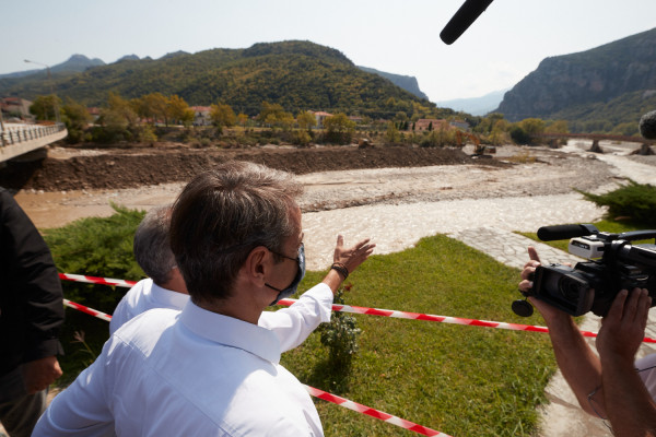 Ο Κ. Μητσοτάκης συμμετείχε σε σύσκεψη με τοπικούς φορείς στο Δημαρχείο της Καρδίτσας, πέταξε με ελικόπτερο πάνω από τα σημεία όπου σημειώθηκαν μεγάλες καταστροφές και στη συνέχεια συνομίλησε με κατοίκους που βιώνουν δύσκολες στιγμές τα τελευταία εικοσιτετράωρα.