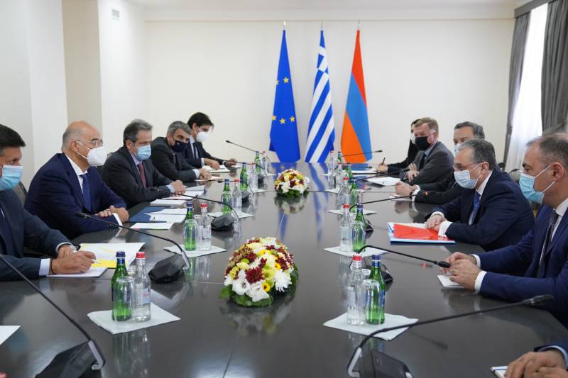 Περαιτέρω γίνεται γνωστό πως μετα την κατ' ιδίαν συνάντηση του υπουργού Εξωτερικών με τον Αρμένιο ομόλογό του ακολούθησαν διευρυμένες συνομιλίες μεταξύ των αντιπροσωπειών της Ελλάδας και της Αρμενίας. Στο επίκεντρο βρέθηκαν η συνεργασία Ελλάδας – Αρμενίας, οι εξελίξεις στο Ναγκόρνο-Καραμπάχ και την Ανατολική Μεσόγειο, καθώς και οι σχέσεις ΕΕ – Αρμενίας.