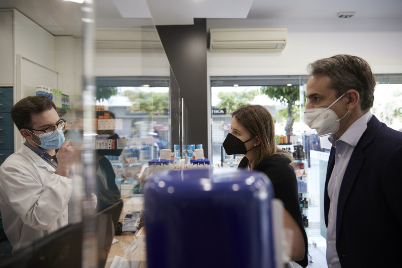 Ο Κυριάκος Μητσοτάκης εξήγησε ότι η Δάφνη βρίσκεται στην Γ’ Λυκείου, έτσι προσήλθαν στο φαρμακείο για την προμήθεια του self-test. «Ήρθαμε να πάρουμε το τεστ μας. Πώς πάνε μέχρι στιγμής οι παραδόσεις;», ρώτησε ο Πρωθυπουργός τον φαρμακοποιό.