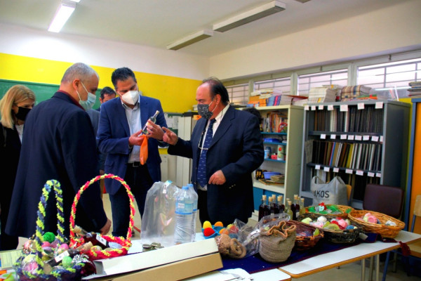 Τα στελέχη της ΝΔ προσέφεραν εξειδικευμένα υλικά για τη διευκόλυνση της λειτουργίας του εργαστηρίου καθώς και εκπαιδευτικά βοηθήματα για τους μαθητές. Ο διευθυντής του ΕΕΕΕΚ ανταπέδωσε με χειροποίητα δώρα των παιδιών.