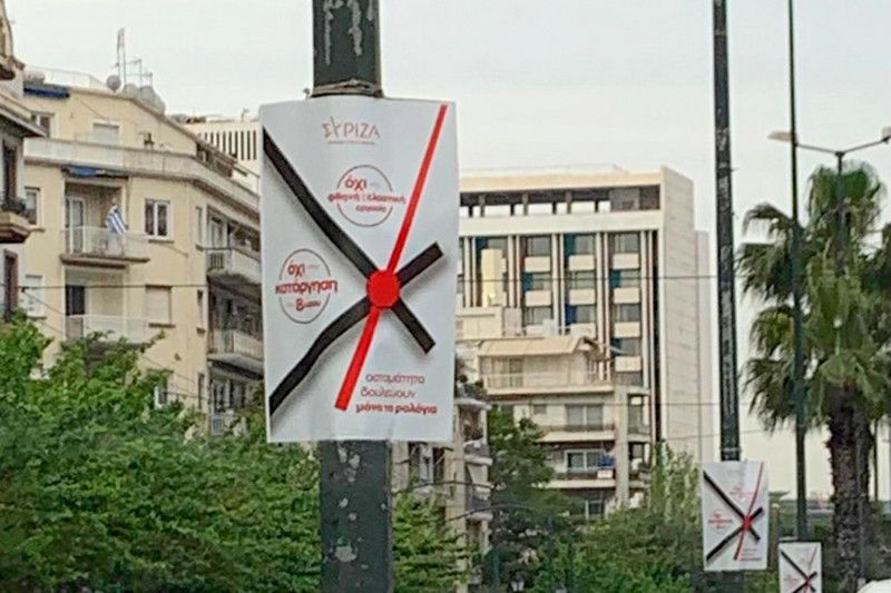 Για αφισορύπανση κατηγορεί η Νέα Δημοκρατία τον ΣΥΡΙΖΑ - Προοδευτική Συμμαχία, κάνοντας λόγο για «κενά συνθήματα και όχι δεσμεύσεις προς τους πολίτες», με αφορμή τις αφίσες του κόμματος της αξιωματικής αντιπολίτευσης στην Αττική, λόγω των κινητοποιήσεων της Πέμπτης (06/05).