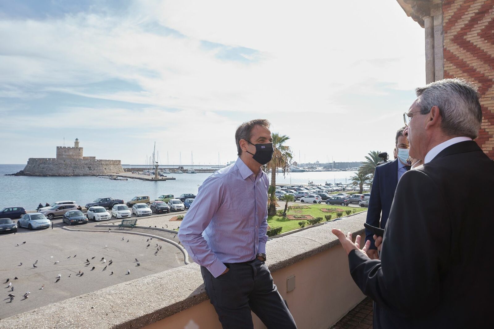 Ο κ. Μητσοτάκης ενημερώθηκε από τον Διευθύνοντα Σύμβουλο της εταιρείας Μαρίνες Ρόδου ΑΕ, Θωμά Τριανταφύλλου, τον Γενικό Διευθυντή Χριστόφορο Χαρίση για τα σχέδια που αποσκοπούν στην επέκταση και ολιστική αναβάθμιση των υποδομών της μαρίνας, ώστε να μετατραπεί σε κομβικό σημείο για τον τουρισμό υψηλών προδιαγραφών στην ευρύτερη περιοχή της Ανατολικής Μεσογείου και σε κέντρο επιχειρηματικής δραστηριότητας.