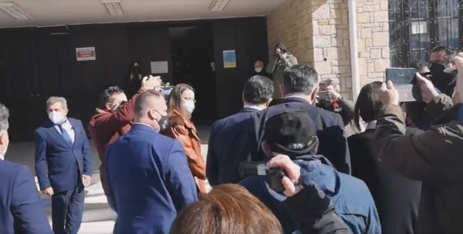 Μόλις βγήκε από το αυτοκίνητο, οι πολίτες που ήταν συγκεντρωμένοι στο σημείο των υποδέχτηκαν με έντονες αποδοκιμασίες ενώ κυρίαρχούσαν οι φωνές για το «ακριβότερο ρεύμα στην Ευρώπη»