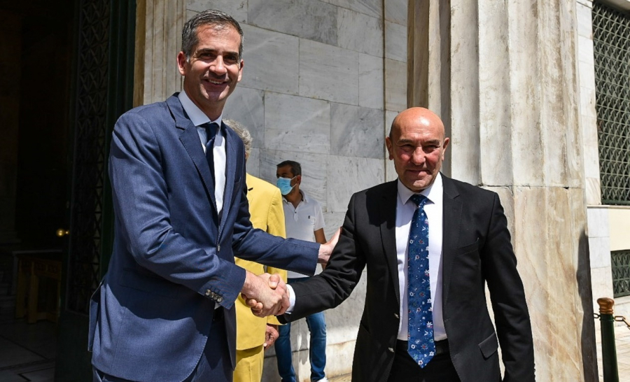 «Δεν μπορούμε να επιτρέψουμε στον Ερντογάν να κρατά σε ομηρία τις σχέσεις των λαών μας» ανέφερε ο Δήμαρχος Αθηναίων Κώστας Μπακογιάννης σε συνάντηση που είχε με τον Δήμαρχο Σμύρνης, Τουντς Σοϊέρ.