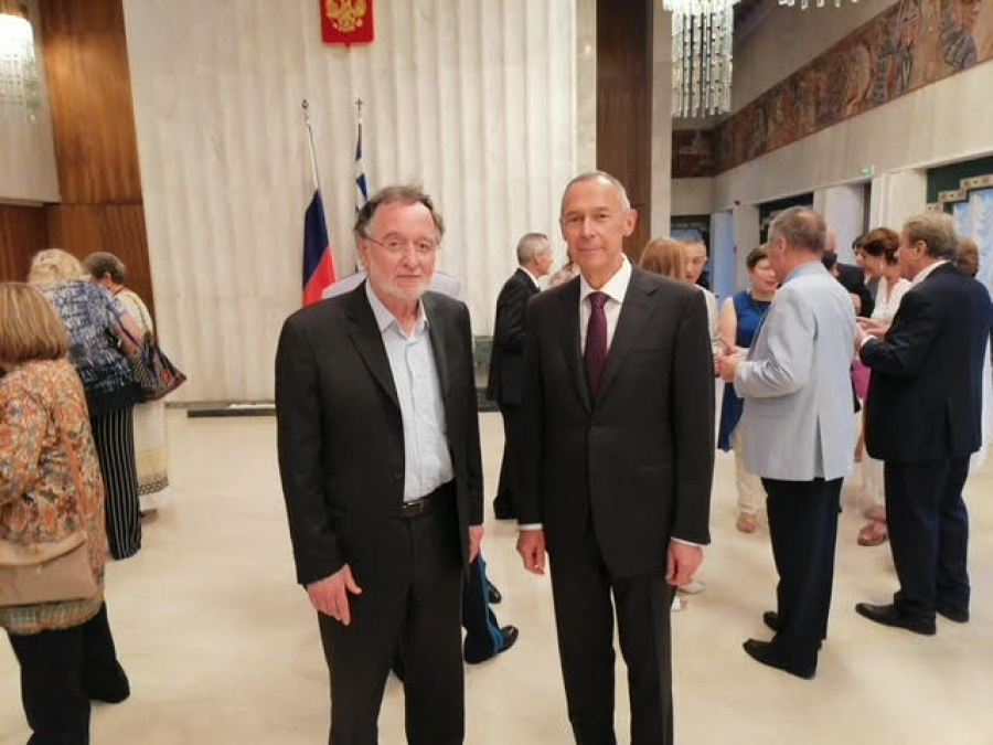 «Η Ελλάδα κατάφερε με τις αντιρώσικες και τυφλές αμερικανονατοϊκές πολιτικές της να τερματίσει και σχεδόν να νεκρώσει κάθε σχέση με τη Ρωσία», ανέφερε ο Παναγιώτης Λαφαζάνης που βρέθηκε καλεσμένος στη ρωσική πρεσβεία - και συγκεκριμένα σε δεξίωση που παρέθεσε την Πέμπτη (9/6/22) στο κτίριο της για την επέτειο ίδρυσης της Ρωσικής Ομοσπονδίας.