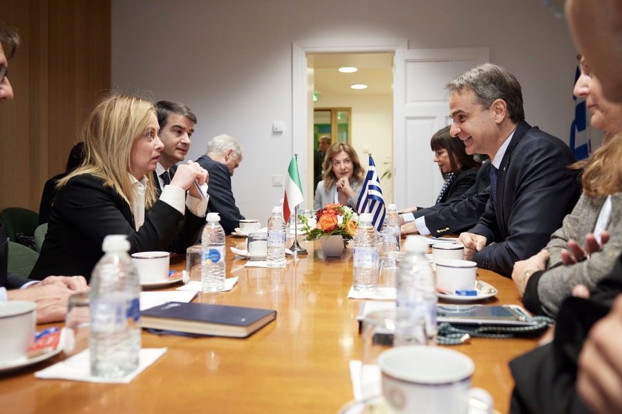 Ο Πρωθυπουργός ενημέρωσε την κα Μελόνι για τις τελευταίες εξελίξεις στο Αιγαίο και στην Ανατολική Μεσόγειο και τόνισε ότι η επιθετική ρητορική της τουρκικής πολιτικής ηγεσίας, που απειλεί ευθέως την Ελλάδα, θέτει σε κίνδυνο την ασφάλεια και τη σταθερότητα στην περιοχή