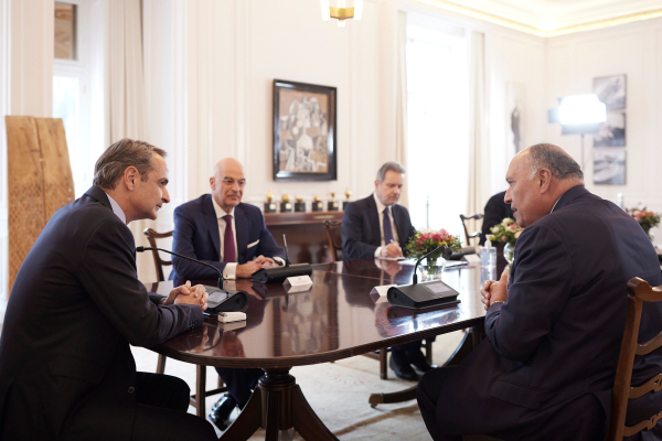 Ο Σαμέχ Σούκρι συναντήθηκε και με τον υπουργό Εξωτερικών, Νίκο Δένδια, μετά το πέρας της συνάντησης πραγματοποιήθηκαν διευρυμένες συνομιλίες μεταξύ των δύο αντιπροσωπειών και κοινές δηλώσεις στον Τύπο.