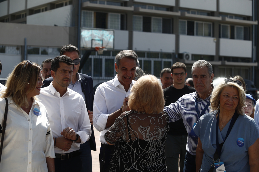 Ο Κυριάκος Μητσοτάκης ψηφίζει μαζί με τον γιο του Κωνσταντίνο και την κόρη του Δάφνη στο 1ο Γυμνάσιο Κηφισιάς, στο 361ο εκλογικό τμήμα (Λεβίδου 42). Πλήθος κόσμου υποδέχτηκε τον πρόεδρο της Νέας Δημοκρατίας με χειροκροτήματα στο εκλογικό τμήμα της Κηφισιάς.