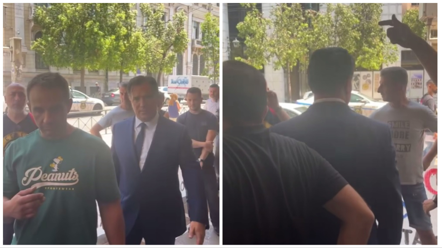 Στο βίντεο φαίνεται ο υπουργός να ζητά από τους συγκεντρωμένους να βγάλουν μία αντιπροσωπεία και να ανέβουν στο γραφείο του να μιλήσουν.