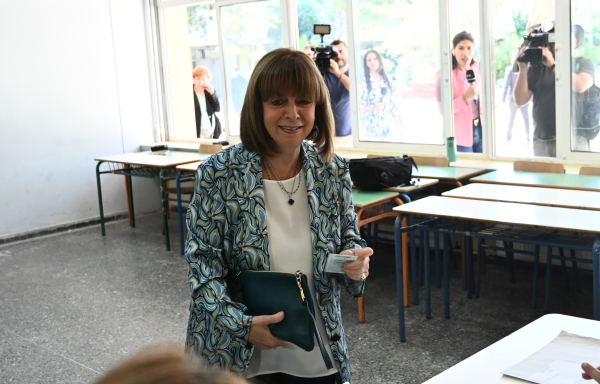 Στο σχολικό συγκρότημα της Γκράβας ψήφισε περίπου στις 10:30 η Πρόεδρος της Δημοκρατίας, Κατερίνα Σακελλαροπούλου.