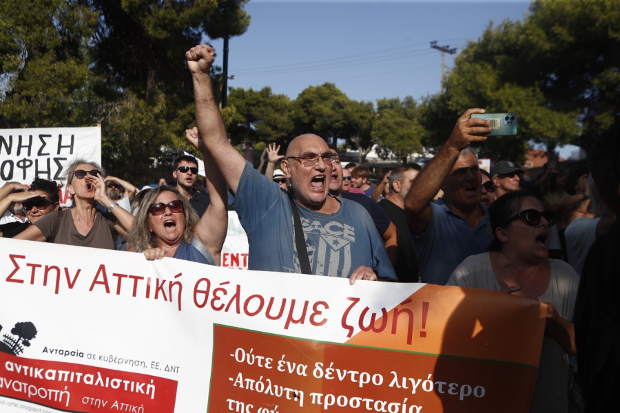 Η περιοχή πέριξ του χώρου της σύσκεψης δίχως υπερβολή γέμισε αστυνομικούς και κλούβες υπό τον φόβο αντιδράσεων και έντονων διαμαρτυριών. Με πανό και φωνάζοντας συνθήματα κατά της κυβέρνησης και υπέρ του περιβάλλοντος, οι συλλογικότητες αλλά και οι αγανακτισμένοι πληγέντες πολίτες ζητούν αποκατάσταση του δάσους.