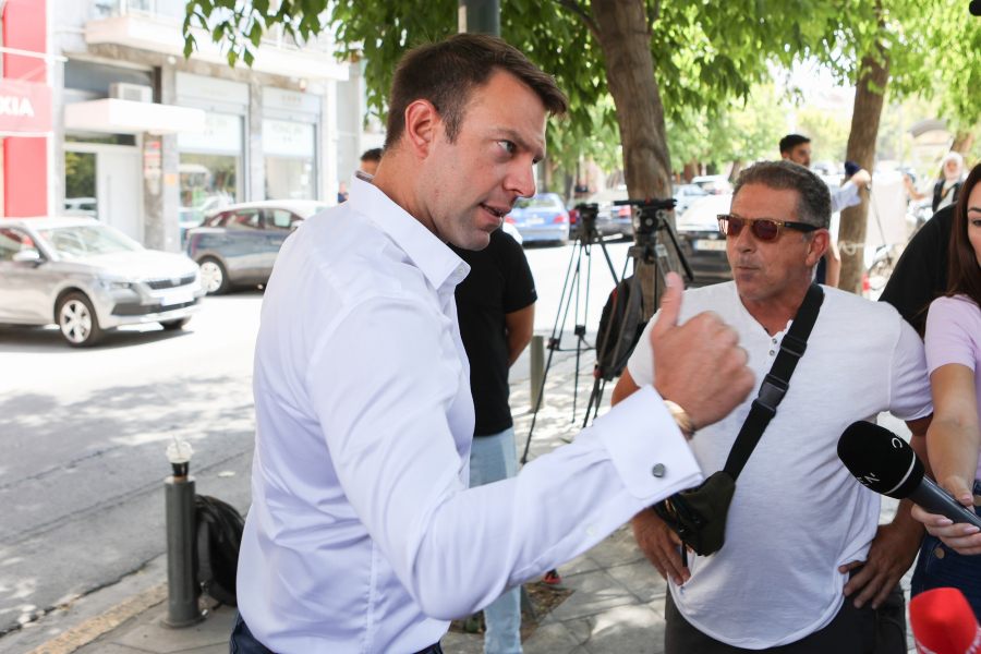 Πέρα από το τετ α τετ με τους εργαζόμενους στην Αυγή, ο Στέφανος Κασσελάκης βγήκε από τα γραφεία του ΣΥΡΙΖΑ για να απευθυνθεί και στους δημοσιογράφους άλλων ΜΜΕ που βρίσκονταν εκεί.