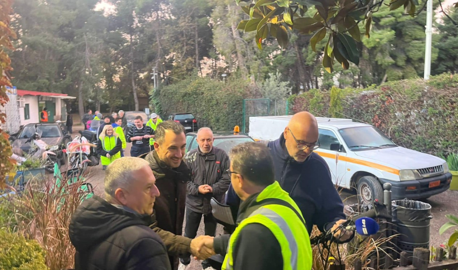 Τις εργαζόμενες και τους εργαζόμενους στην καθαριότητα και στις υπηρεσίες πράσινου του δήμου Αιγάλεω επισκέφθηκε ο πρόεδρος της Νέας Αριστεράς, Αλέξης Χαρίτσης, συνοδευόμενος από τον Νάσο Ηλιόπουλο και μέλη της τοπικής οργάνωσης του κόμματος.