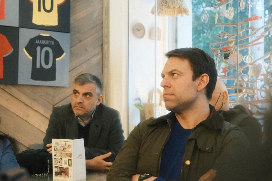 Το καφέ «Σχεδία», στο κέντρο της Αθήνας, επισκέφθηκε ο Στέφανος Κασσελάκης, μαζί με στελέχη του Κινήματος Δημοκρατίας.