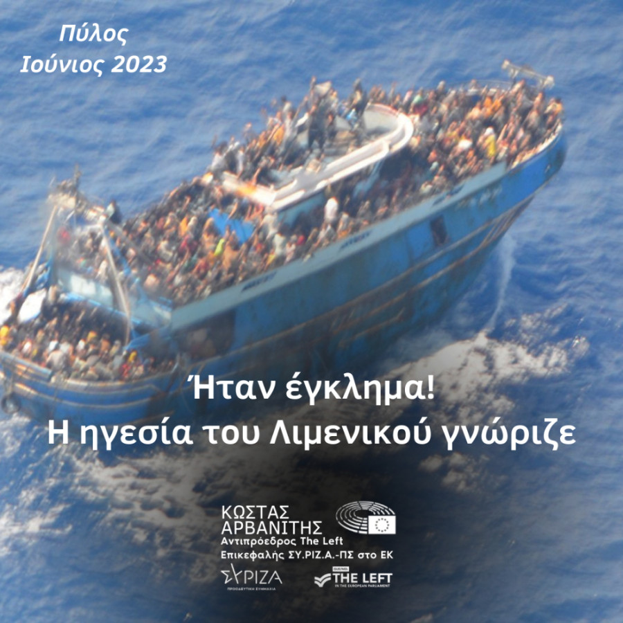 Το λιμενικό έχει ευθύνη για το έγκλημα στην Πύλο, αναφέρει σε ανανοίνωσή του ο ευρωβουλευτής του ΣΥΡΙΖΑ Κώστας Αρβανίτης.