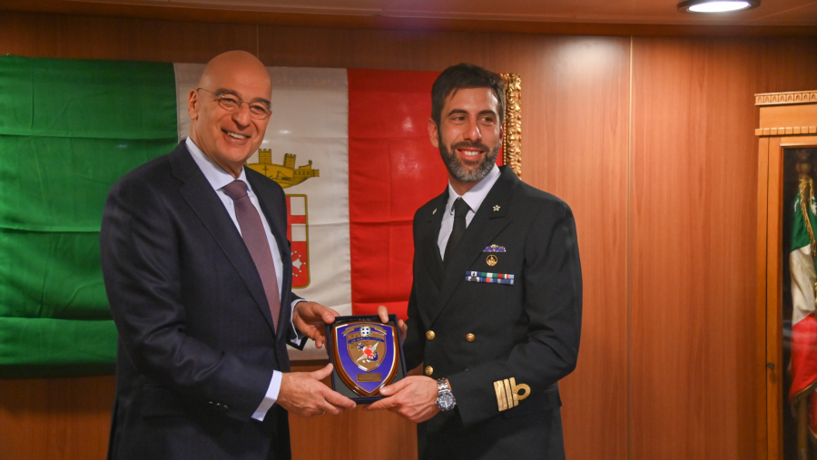 O υπουργός Εθνικής Άμυνας, Νίκος Δένδιας, συνοδευόμενος από τον αρχηγό́ ΓΕΕΘΑ στρατηγό́ Δημήτριο Χούπη, καθώς και τον αρχηγό ΓΕΝ αντιναύαρχο Δημήτριο - Ελευθέριο Κατάρα ΠΝ, πραγματοποίησε σήμερα, Κυριακή 30 Μαρτίου, εθιμοτυπική επίσκεψη στη φρεγάτα του Πολεμικού Ναυτικού της Ιταλίας Carlo Margottini (F-592), η οποία βρίσκεται παραβεβλημένη στον Λιμένα Πειραιά, στο πλαίσιο αποστολής της.